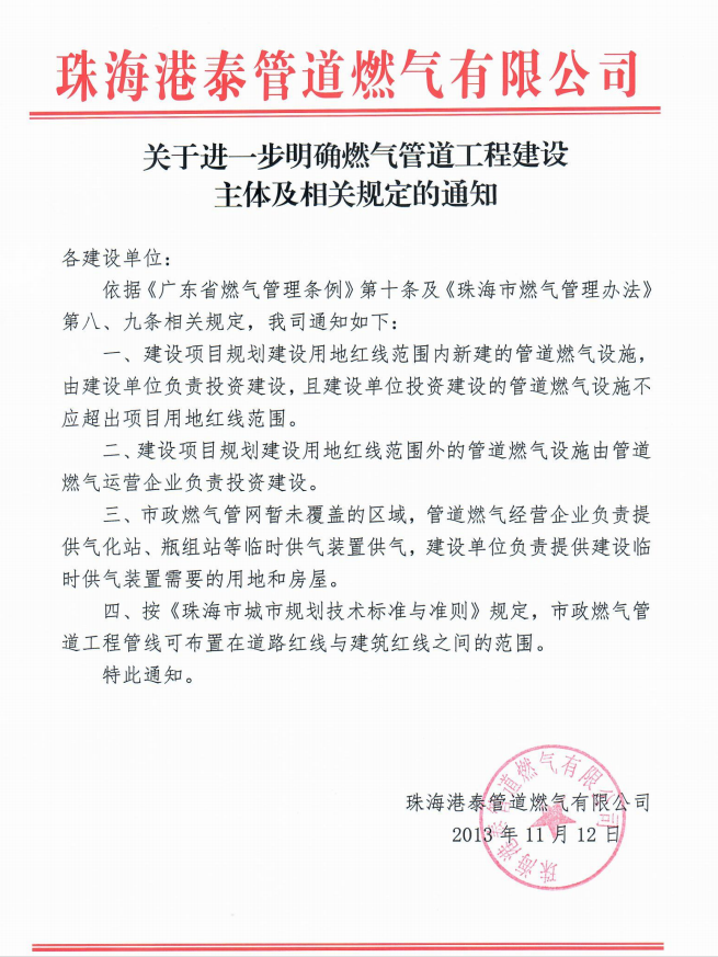 關(guān)于進(jìn)一步明確燃?xì)夤艿拦こ探ㄔO(shè)主體及相關(guān)規(guī)定的通知