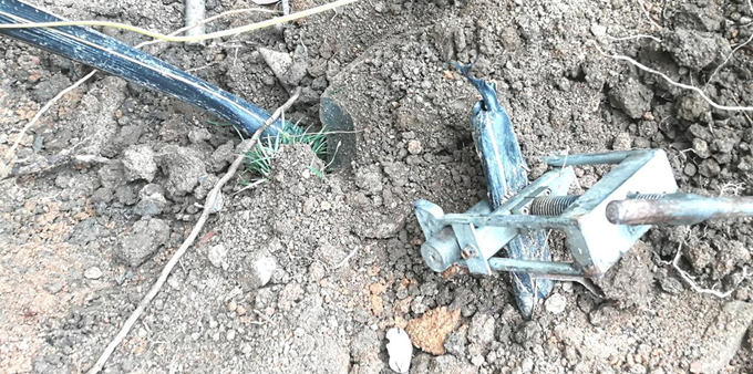 圖說:事發(fā)現(xiàn)場,斷裂的天然氣管道。 隨后,應(yīng)急搶修隊伍設(shè)置鐵馬、警示帶,封閉現(xiàn)場,防止人車靠近,并安排專人進行現(xiàn)場警戒;尋找到事件相關(guān)人員后,對他們進行了安全警示教育,研究下一步維修事宜。