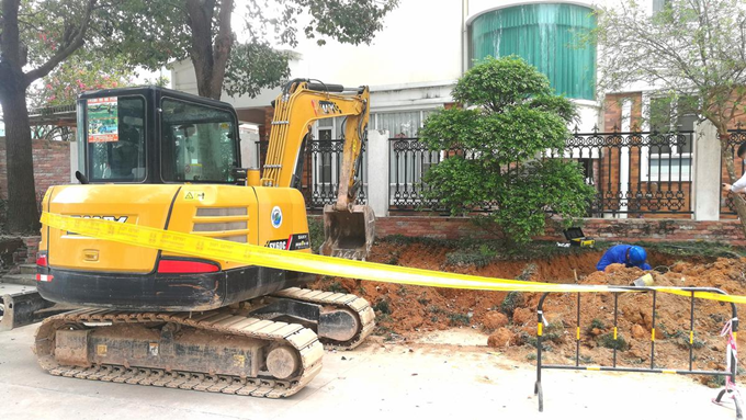 當(dāng)日8時38分,珠海港泰燃?xì)鈸屝逕峋接到市民陳先生緊急求助,海灣花園28棟(別墅區(qū))有人進行戶外挖掘作業(yè)時挖破燃?xì)夤艿,造成燃(xì)庑孤,需要搶險救援。 接報后,珠海港泰管道燃?xì)庥邢薰炯磫討?yīng)急預(yù)案,組織搶修人員趕赴現(xiàn)場處置,8時50分許即到達(dá)現(xiàn)場。“被挖斷的燃?xì)庠O(shè)施為28棟住宅地埋式入戶天然氣管(低壓燃?xì)夤艿溃,管?/span>32毫米。管破氣漏,情況危急。當(dāng)時,旁邊一輛挖掘機還在挖土,沒有停下來的意思。為防機械高溫部件及金屬火花引燃混合氣體,搶險班組立即叫停挖機和操作員。”隨即,工作人員用管道夾具對斷裂氣管進行夾持封閉,8時59分就切斷了氣源,控制住了現(xiàn)場燃?xì)庑孤╇U情。