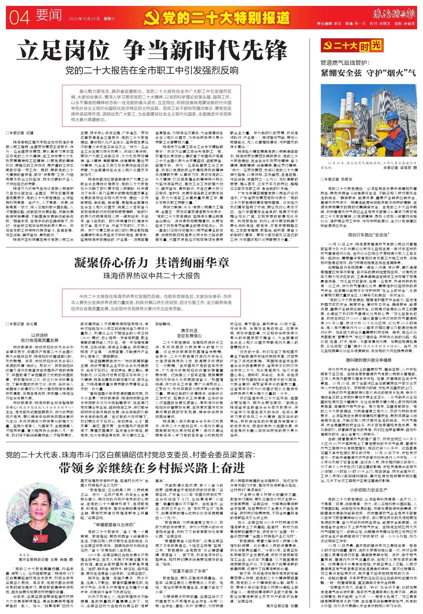 10月21日,前山天然氣儲配站內(nèi),工作人員正在進行日常巡檢。 用自行車跑出“安全線” 10月20日上午,珠海港泰管道燃氣有限公司運行管理部監(jiān)察大隊大隊長兼巡線員劉毛旦和往常一樣對中壓市政燃氣管道進行巡檢,當(dāng)天巡線區(qū)域位于港珠澳大橋人工島北珠一路附近,需要重點察看現(xiàn)場有無第三方施工跡象、設(shè)施標(biāo)識樁是否完好、閥門井等設(shè)施是否存在泄漏隱患。 他腳蹬自行車和同事一道在人行道、綠化帶、逼仄通道等埋管區(qū)域穿行察看,自行車的便利性顯現(xiàn)出來!斑@是機動車及腳力無法匹敵的,工具雖簡單但在特定工作環(huán)境下卻是最佳選擇!眲⒚⿲τ浾哒f,他是一名黨員,熱愛并積極投身一線工作,作為燃氣管道巡線員,需要維護這座城市的供氣安全,他很高興能用汗水守護市民“灶臺上的安全”,也很樂意用雙腳丈量安全區(qū),以單車雙輪跑出一條安全線。 “黨的二十大報告提出,增強維護國家安全能力,堅定維護國家政權(quán)安全、制度安全、意識形態(tài)安全,確保糧食、能源資源、重要產(chǎn)業(yè)鏈供應(yīng)鏈安全,這既是對能源戰(zhàn)線員工的鞭策,也道出了我們?nèi)細夤艿姥簿員的心聲!眲⒚└嬖V記者,我市主城區(qū)約1000公里巡查管線中僅市政燃氣管道就有300多公里,被劃分成12個巡線區(qū)域;巡線員24小時待命,每人每天需騎行約40公里來對相應(yīng)管線及配套設(shè)施進行巡護。如此巨大的任務(wù)量需要科技加持。原來,每名巡線員都配有“智慧燃氣”定位終端設(shè)備,按照優(yōu)化后的線路一路巡視、檢查、打卡,每到一處都有情況反饋。如果出現(xiàn)漏檢漏報,系統(tǒng)將現(xiàn)“紅警”提示(情況正常則顯示綠標(biāo))。當(dāng)天,劉毛旦和同事巡線任務(wù)進展順利,未發(fā)現(xiàn)較大風(fēng)險隱患問題。 隨叫隨到提升群眾幸福感 作為燃氣安全鏈條上的重要環(huán)節(jié),售后客服、入戶安檢同樣不容忽視。在珠海港泰管道燃氣有限公司服務(wù)管理部,工作人員每天都要處理有關(guān)安檢、加建、改管等的各類涉氣事宜。10月20日,到了給香洲區(qū)金石街高層住戶李女士家作入戶安檢的日子。按照預(yù)約時間,安檢員石磊按時上門。 手持式燃氣泄漏探測儀取代傳統(tǒng)的肥皂水檢測、電子終端設(shè)備實時上傳現(xiàn)場情況方便業(yè)主簽認,一系列新變化讓石磊的檢測效率大幅提升,也讓他有更多精力用心做好現(xiàn)場隱患排查,保障用戶用氣安全。身為黨員,石磊有感而發(fā):“黨的二十大報告提出,為民造福是立黨為公、執(zhí)政為民的本質(zhì)要求。必須堅持在發(fā)展中保障和改善民生,鼓勵共同奮斗創(chuàng)造美好生活,不斷實現(xiàn)人民對美好生活的向往。天然氣穩(wěn)供、安全是重要的民生任務(wù),關(guān)乎百姓幸福和綠色發(fā)展。身處新時代,迎著踔厲奮發(fā)的號角,我們應(yīng)當(dāng)振奮精神,倍加珍惜美好時光,全心全意為人民服務(wù)。” 當(dāng)前,隨著管道燃氣的推廣普及,我市主城區(qū)900多個小區(qū)約40萬戶居民用上了清潔便利的天然氣能源;管道天然氣工商用戶也有明顯增長,現(xiàn)已達到700多戶。這些都是石磊及其安檢團隊服務(wù)的對象。10月20日下午,安檢員對吉大一家新開通管道天然氣的餐飲場所進行入戶安檢,一個小變化引起了記者注意:在過去人員、技術(shù)相對缺乏的年代,為了減少入戶安檢對門店經(jīng)營的影響,安檢員通常會在每天10時前、14時至16時30分上門;現(xiàn)在裝備、技術(shù)全面升級,工作人員可以做到隨叫隨到,高效檢測發(fā)現(xiàn)問題并現(xiàn)場整治,幾乎不會對工商用戶正常經(jīng)營造成影響。 小妙招助力安全生產(chǎn) 黨的二十大報告提出,必須堅持科技是第一生產(chǎn)力、人才是第一資源、創(chuàng)新是第一動力,深入實施科教興國戰(zhàn)略、人才強國戰(zhàn)略、創(chuàng)新驅(qū)動發(fā)展戰(zhàn)略,開辟發(fā)展新領(lǐng)域新賽道,不斷塑造發(fā)展新動能新優(yōu)勢。我市管道燃氣企業(yè)黨員干部群眾在學(xué)習(xí)報告精神后紛紛表示,將以更加良好的風(fēng)貌和更加飽滿的熱情,奮力開創(chuàng)我市民生供給、能源安全新局面。沒有儲備安全就談不上供氣用氣安全。在珠海主城區(qū)兩大天然氣儲配站之一的前山站,近期操作員圍繞如何立足崗位開創(chuàng)安全生產(chǎn)新局面進行了積極探討,將一個個小妙招、好辦法運用到工作中。 10月21日凌晨,值夜班的操作員劉立勇和往常一樣每小時對站內(nèi)儲罐、管網(wǎng)、消防水泵等設(shè)施巡查一次,并對各種儀器儀表情況進行核查,確保隱患早發(fā)現(xiàn)。深夜,由于用氣量驟減,管道內(nèi)天然氣流量極低,出現(xiàn)了儀表無讀數(shù)的情況。這種情況十分具有迷惑性,夜間容易讓人忽略,從而對管道是否有氣或者是否存在泄漏造成誤判。面對這種情況,劉立勇沒有輕易放過,既然看不出來那就用別的辦法——聽。他貼近管道,多年積累的經(jīng)驗已經(jīng)讓他能夠聽出管內(nèi)動靜,一段一段管道排查,直至確保沒有安全問題。