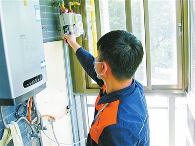 燃?xì)馄髽I(yè)服務(wù)人員對(duì)用戶新裝燃?xì)獗砗陀脷庠O(shè)施進(jìn)行安全檢測(cè)。