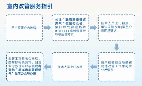 二、開戶需要準(zhǔn)備的資料 ● 房產(chǎn)證明(二選一): 1、房產(chǎn)證; 2、購房合同(買受人姓名、小區(qū)名稱、房號(hào)、雙方蓋章簽名頁碼)。 如未配套加建小區(qū)還需提供《未配套小區(qū)戶內(nèi)燃?xì)夤艿兰友b工作單》 ● 業(yè)主身份證明(四選一): 1、國內(nèi)第二代身份證; 2、臺(tái)胞證; 3、港澳居民身份證; 4、護(hù)照。 ● 若委托代辦人辦理業(yè)務(wù),除上述兩項(xiàng)資料齊全外,還需提供如下資料: 1、代理人身份證; 2、業(yè)主委托書 ● 燃?xì)赓M(fèi)繳納 1、辦理銀行托收用戶:提供珠海本地中國銀行、工商銀行、建設(shè)銀行、交通銀行、農(nóng)業(yè)銀行、郵政儲(chǔ)蓄銀行、廣發(fā)銀行的活期存折或存儲(chǔ)卡(七選一)及銀行賬號(hào)開戶人身份證。 2、可關(guān)注“珠海港泰管道燃?xì)狻蔽⑿殴娞?hào)或在微信、支付寶“生活繳費(fèi)”平臺(tái)在線繳費(fèi)。