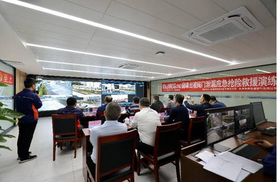 各組分工明確,密切配合,高效聯(lián)動,現(xiàn)場救援處置迅速。隨著泄漏儲罐液體排空,環(huán)境可燃氣體濃度處于安全狀況,緊急切斷閥恢復啟閉功能,泄露儲罐采取警示隔離,最終警戒解除,整個演練過程在27分鐘內順利完成。 同時,此次演練首次啟用了公司智慧燃氣綜合管理平臺聯(lián)動,演練現(xiàn)場將險情上報至調度中心,應急指揮部在調度中心發(fā)出應急搶險指令,統(tǒng)一調配應急搶險力量。同時利用固定攝像頭、球機和頭盔記錄儀多視角記錄現(xiàn)場演練進程,并于應急指揮調度中心大屏同步直播展示,整個演練過程一目了然,保障了現(xiàn)場情況的及時掌握與指揮的即時性、準確性。 演練結束后,珠海市城市管理和綜合執(zhí)法局市政設施科科長彭華明對本次演練活動進行了點評。他表示,演練過程緊張有序,準備充分,各項演練科目均較為順利地完成。同時他強調,一是注重人員安全,面對風險較高的事故時,要能夠保障自身安全,做好應急防護。二是要貼近實戰(zhàn),今年以來各地安全生產事故頻發(fā),搶險救援過程中也能夠暴露出一些問題,應急預案與演練方案都應更加貼近實戰(zhàn),從而鍛煉提高企業(yè)應對事故風險的能力。 珠海市城市管理和綜合執(zhí)法局、珠海市應急管理局、珠海市市場監(jiān)督管理局、珠海市香洲區(qū)城市管理與綜合執(zhí)法局、珠海市香洲區(qū)應急管理局、珠海市香洲區(qū)市場監(jiān)督管理局、珠海港控股集團有限公司、珠海港興管道天然氣有限公司相關領導出席觀摩指導。