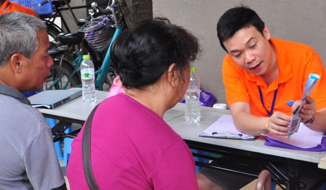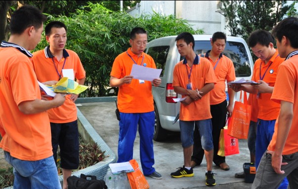 置換現(xiàn)場工作人員向用戶宣傳天然氣安全使用常識。