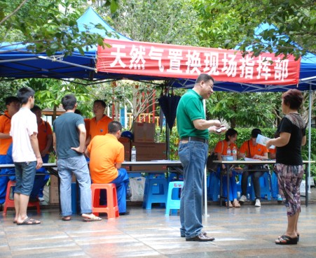 天蒙蒙亮,我公司工作人員開始對小區(qū)管道進(jìn)行天然氣置換。
