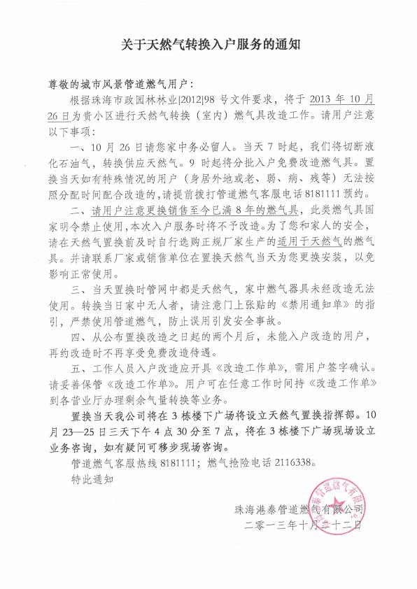 關于天然氣轉換入戶服務的通知(幸福里、城市風景)